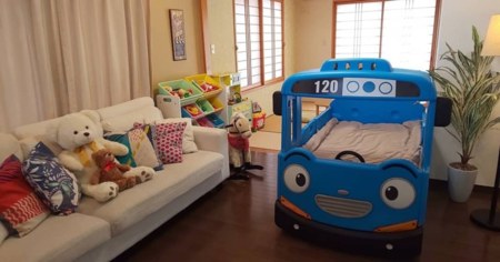 99平米の2階建です。ベッドルームは3つあり、ダブルベッドが5台あるため、最大で10名様までご宿泊いただけます。