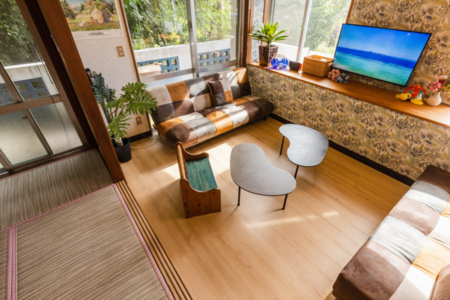 以前に某テレビ局で運営されお笑い芸人の方が管理をされていたあの民宿が民宿ゆいゆいとしてオープンしました。(現在はテレビ局とは一切関係ありません。)当民宿は、宿泊するお部屋のご提供だけでなく、キッチンやリビングルーム・ダイニングルームを使うことができますので、まるで宮古島で生活しているような新感覚の宿泊施設です。